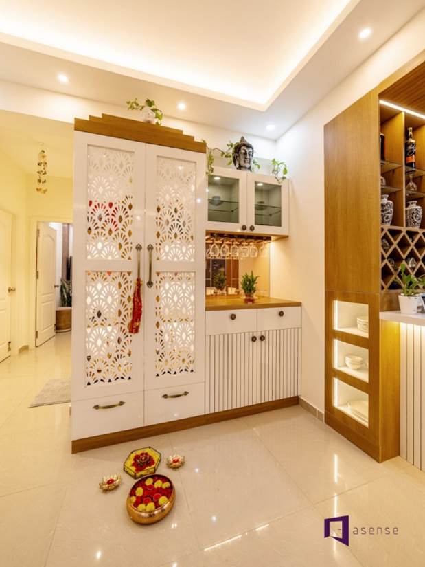 - Pooja room interior design for both self-contained houses and luxurious apartment buildings.