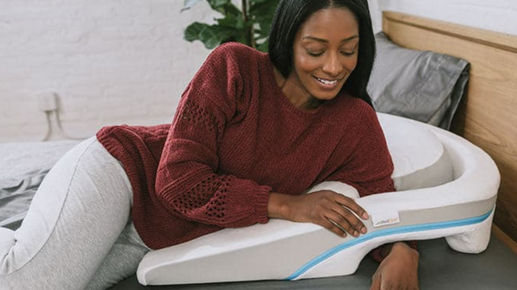 A knee pillow works as a balance tool. It spreads body weight evenly. This lowers the pressure on one shoulder.