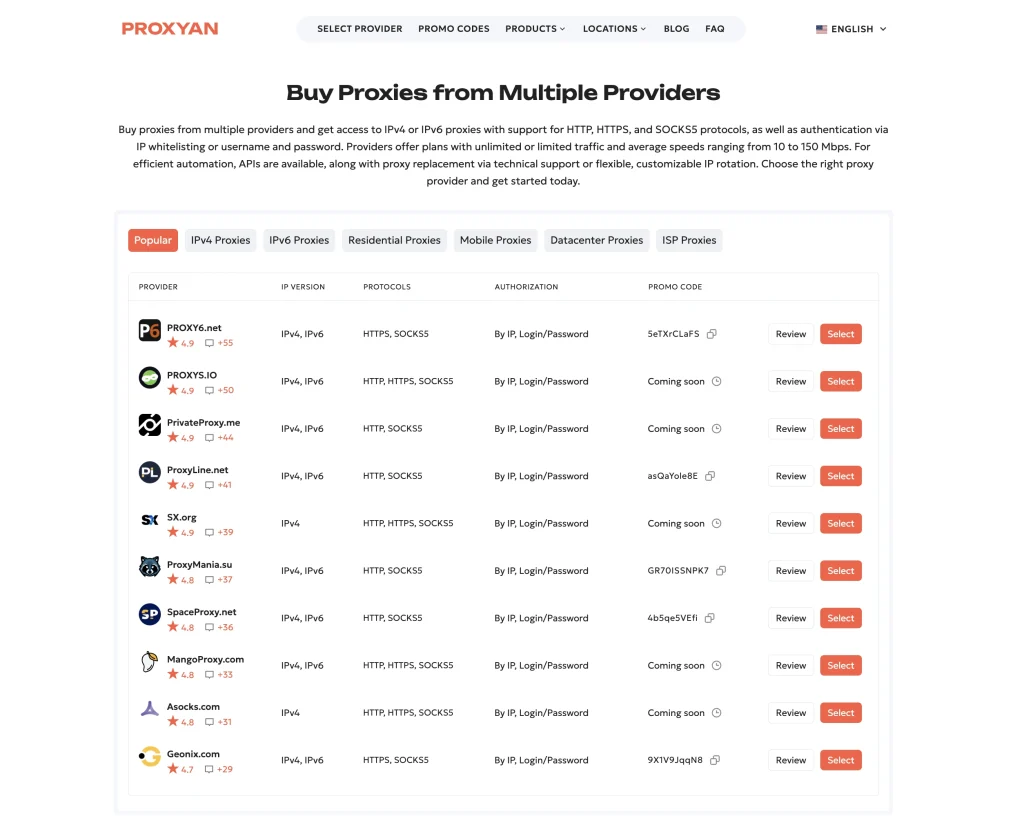 When tasks require stable connections, guaranteed performance, or large proxy pools, professionals typically rely on commercial proxy services. The PROXYAN platform offers a curated catalog of proxy providers that supply various types of Canadian proxy solutions.
